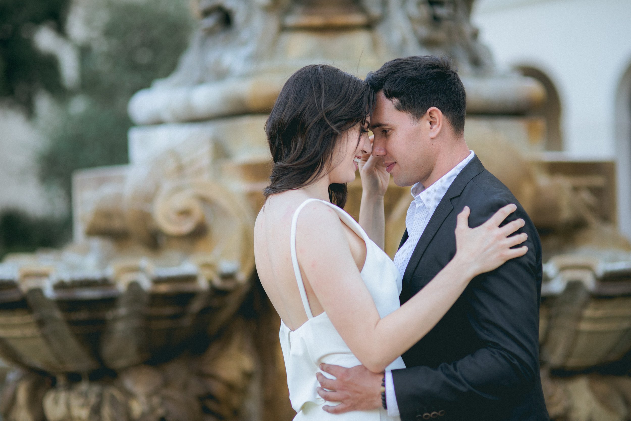 One moment bounding unfettered and unconstrained, their joy a blooming flower, and in another seeping into each others’ hands, their romance a love letter turned bright and glowing with all their affection, Donatella and Kevin seemed to fit at Pasadena City Hall, where the classical architecture matched their refined style sensibilities. They look at each other with a love that seems to make a promise: this will last.